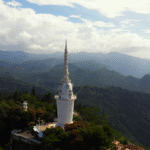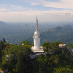 Ambuluwawa is a breathtaking landmark in Sri Lanka, specifically in Gampola, near Kandy. This iconic tower stands 48 meters tall on a 3,500-foot mountain, offering panoramic views of the surrounding landscape. It’s a unique multi-religious site, showcasing Sri Lanka’s rich cultural diversity, with a Buddhist stupa, Hindu kovil, Christian church, and Muslim mosque.